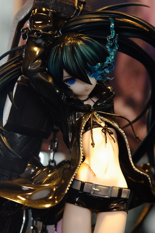 Black Rock Shooter (or simply abbreviated as BRS) is the result of a collaboration between RYO (music) and HUKE (character and video) for a music video of the same name. She is much like a black clad Miku Hatsune and has a giant rocket launcher attached to her left arm, and her left eye turns into a blue flame. Popularity and interest about her grew to the point of figurines produced in her likeness, and many fanarts.