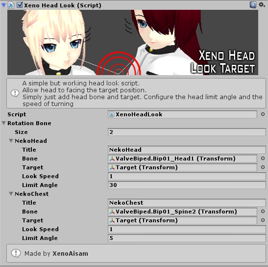 This is simple head look script that orientate the head to face the target position.